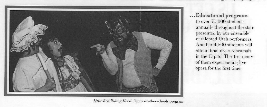 -------------------------------------------------------------------------------------------------------------------------------------Holly Anderson, soprano, has performed in Utah and Idaho for 16 years. Her favorite roles include Peter Pan in Peter Pan, Diana in Lend Me A Tenor, Annie Sullivan in The Miracle Worker, and Domina in A Funny Thing Happened on the Way to the Forum, where she met her husband George. By summer she and her husband own and operate the Cody Old Time Photo photo shop in Cody, Wyoming, and by day she teaches science at the Clark Planetarium.